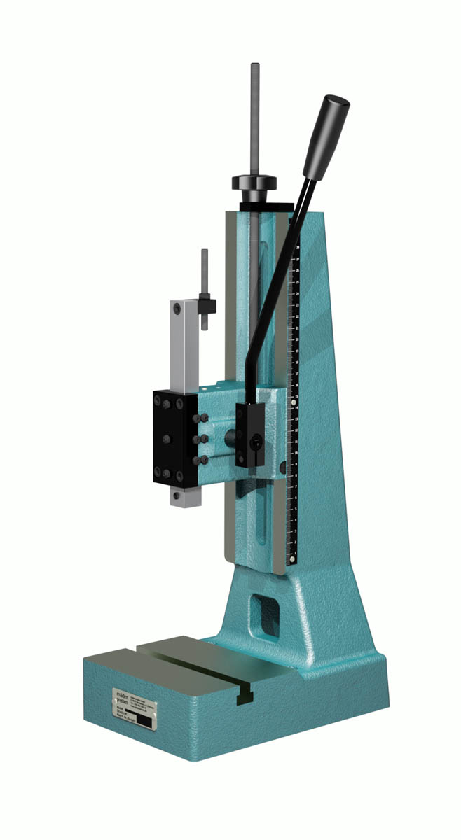 Zahnstangenpressen vermitten ihre Druckkraft konstant über die gesamte Hublänge. Die direkte Kraftübertragung über den Handhebel ermöglichen besonders feinfühliges Arbeiten. Druckkräfte von 1,5 kN bis 2,5 kN.