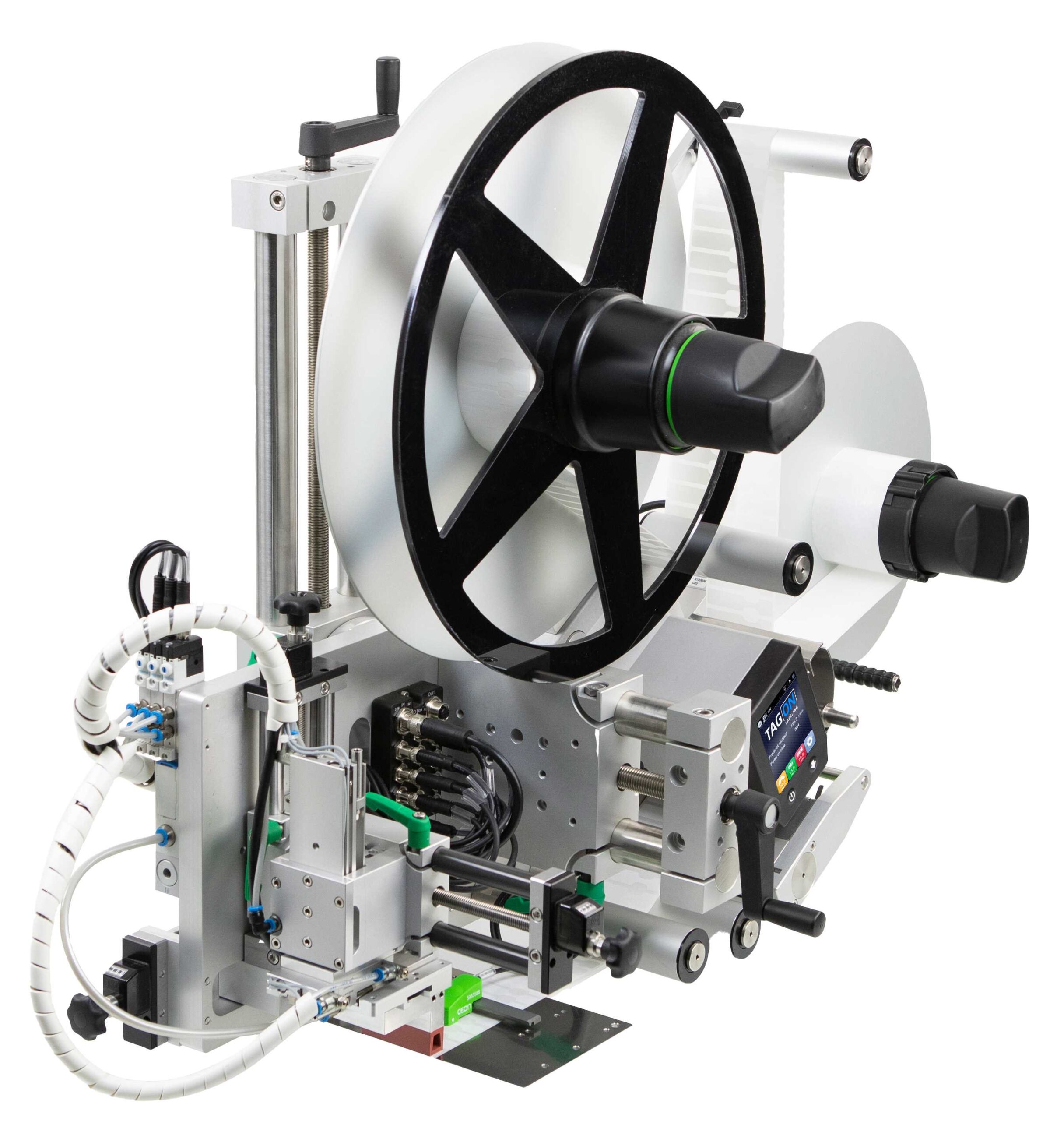 Aufbringen des Etiketts über Hubzylinder. Hubgrößen flexibel wählbar von 40 bis 200 mm.